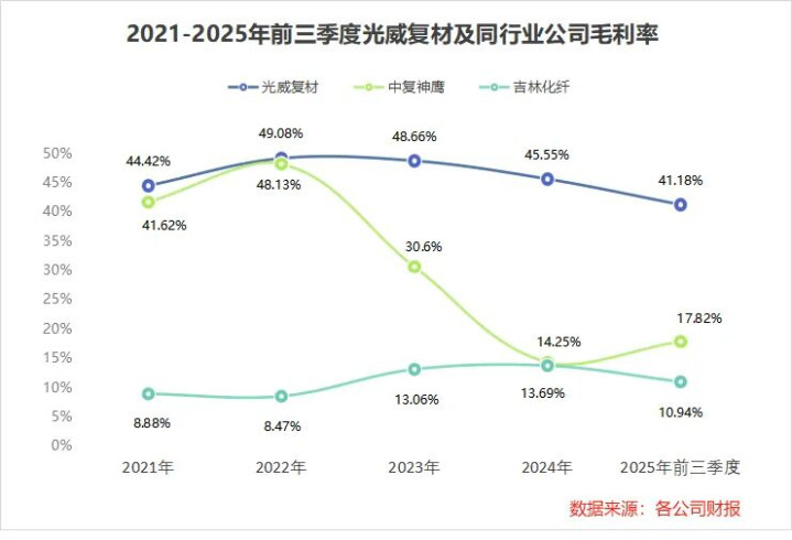 2021年到2025年前三季度,光威复材毛利率均保捏在40%以上,起首于中复神鹰、吉林化纤等同业业公司,成为高端碳纤维赛说念的杰出人物。