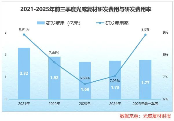 2021到2024年,光威复材每年齐要插足约2亿元进行研发,研发用度率更是多年保捏在6%以上。
