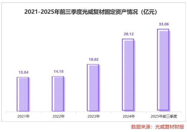 2021年到2025年前三季度,光威复材固定财富从13.84亿元攀升至33.06亿元。2025年,公司碳纤维总产能已达2万吨,瞻望2026年还将新增1.4万吨产能,产能边界捏续扩容。