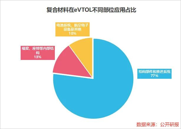 eVTOL动作低空经济的中枢载体,其举座运用的复合材料中,有77%用于机体结构部件和推动系统,且超九成齐是碳纤维复合材料。