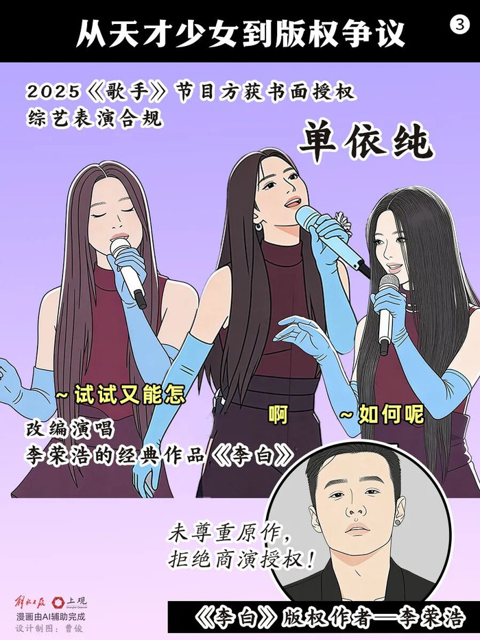 也许是为了彰显我方的“作风”,也许是单纯玩梗,单依纯选拔在改编演唱《李白》时,将我方的“作风”和这句“若何呢,又能怎”看成开场。从李荣浩在长篇声明中的评价来看,他并不认同,以致反对。