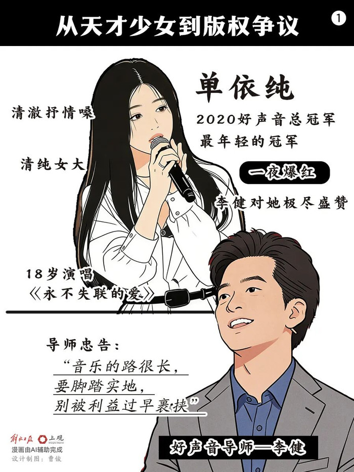 6年前,18岁的单依纯站在《中国好声息2020》的舞台上,凭借一首《永不失联的爱》惊艳全场,今夜爆红,成为史上最年青的冠军选手。那时的节目导师李健对她赐与了高度的评价,同期也奉上了如今看来极具料想性的忠告。