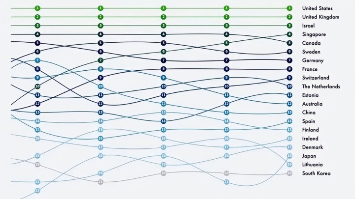 新加坡从2024年第十升到2025年第四,靠金融结识诱骗外资。中国有字节跨越这样的巨头,北京独角兽企业多。榜单上小国如爱沙尼亚得分高,因透澈交出数据主权。中国停止招抚,建微信支付宝生态。这在西方是扣分项,在实验中是竞争力。