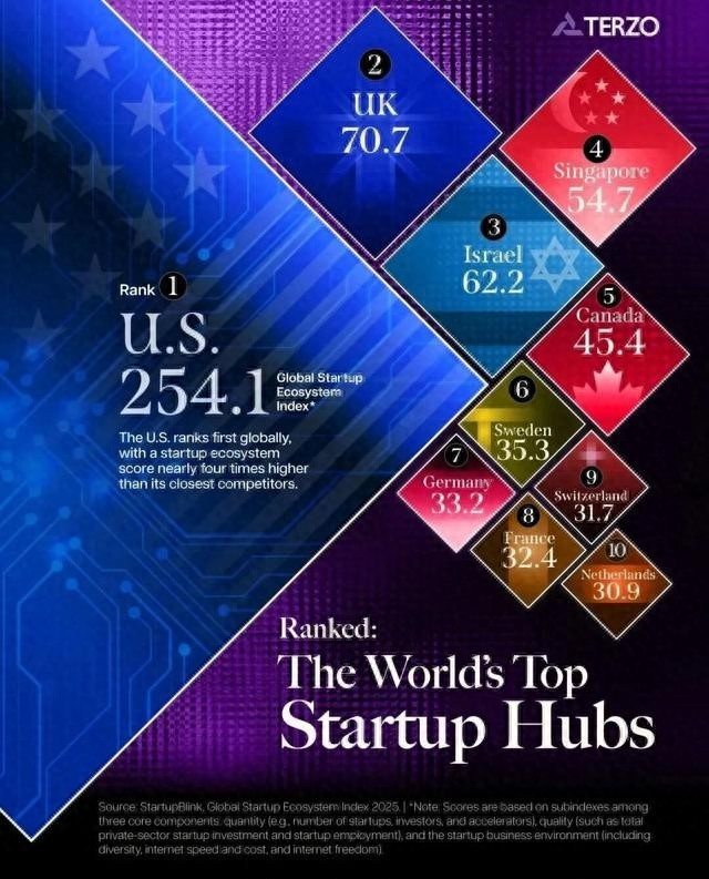 一份来自StartupBlink的2025年寰球初创生态论述在网上闹得沸沸扬扬,好意思国得分遥遥率先,中国却排在十多名后面。这份论述评估列国初创环境,好意思国稳坐头把交椅,因为它在软件和老本流动上占尽上风。中国天然有繁密活跃初创企业,但总分不高,主要卡在生意环境这一块。许多东说念主一看就以为不合劲,中国明明有那么多硬件巨头,何如就排这样后?
